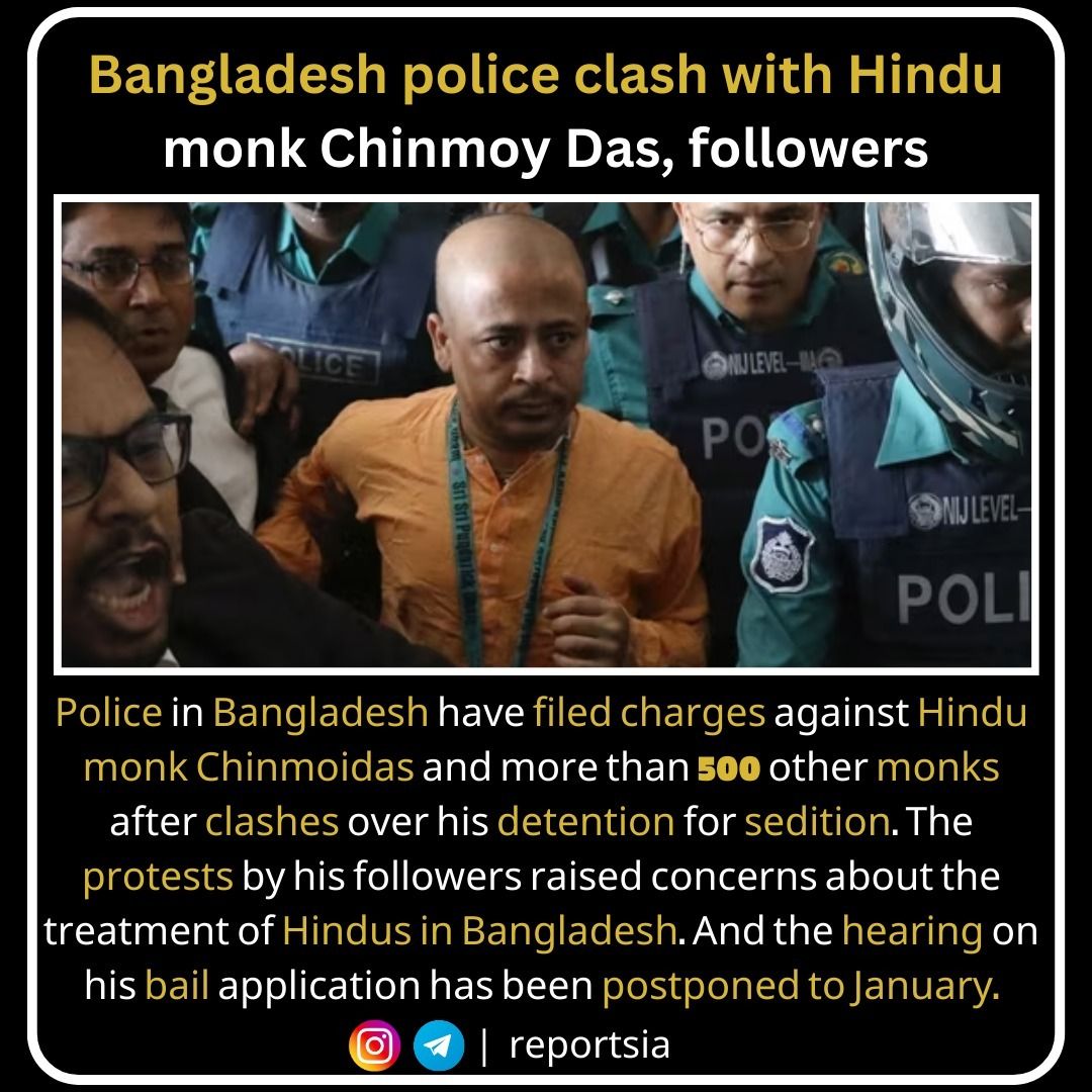 Despite the chaos, Chinmoy Das remained composed, embodying the resilience that true spiritual leaders possess. His calm demeanor as he was escorted by police speaks volumes — a silent prayer in the face of persecution. His bail hearing, postponed to January, has only deepened the tension, as his followers continue peaceful protests, chanting for justice and compassion to prevail. 🌾🕯️