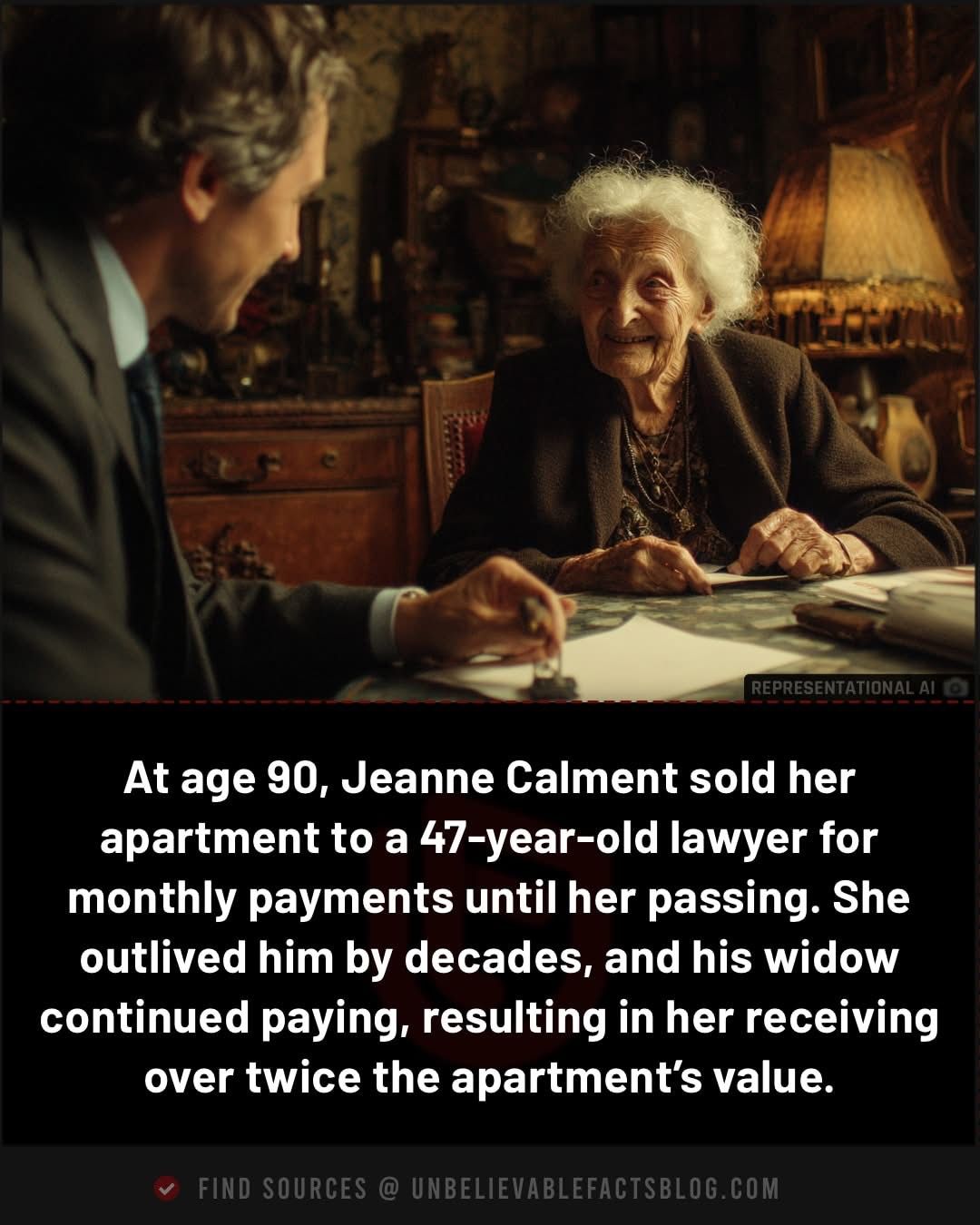 At the age of 90, Jeanne Calment made what seemed like a clever deal — she sold her apartment to a 47-year-old lawyer, who agreed to pay her a monthly stipend until she passed away. The arrangement looked simple: he would inherit the property once she was gone. But fate, and perhaps a touch of humor from the universe, had other plans. Jeanne Calment lived on not for years, but for decades, becoming the oldest verified person in history, living to the age of 122. The lawyer passed away long before she did, and in a twist worthy of legend, his widow continued to make the payments. By the time Jeanne passed, she had received over twice the apartment’s value.