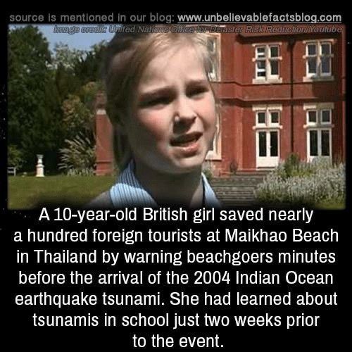 In December 2004, when the Indian Ocean tsunami struck with devastating force, one small voice stood between life and tragedy. On Maikhao Beach in Thailand, a 10-year-old British girl named Tilly Smith noticed something strange β the sea was receding rapidly, and the waves began to churn unnaturally. While others watched in confusion, Tilly remembered a lesson from her geography class just two weeks earlier about how the ocean behaves before a tsunami.
