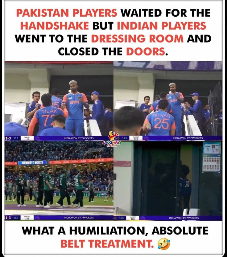 Cricket between India and Pakistan has never been just a game โ€” itโ€™s a storm of passion, pride, and pressure that shakes millions of hearts across borders. After Indiaโ€™s decisive victory by seven wickets, the post-match moment captured here quickly went viral: Pakistanโ€™s players waited at the boundary for a handshake, but the Indian team walked straight into their dressing room, closing the doors behind them. What unfolded next ignited endless debates โ€” was it tension, strategy, or simply an emotional overflow from one of the sportโ€™s fiercest rivalries? ๐Ÿ’ฅ๐Ÿ™Œ