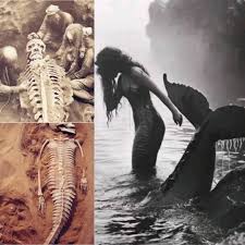 The second image takes a darker turn, presenting a haunting black-and-white excavation photo that shows a mermaid-like skeleton being unearthed from ancient soil. This chilling discovery serves as a silent witness to a forgotten age, sparking curiosity about the civilization that may have worshipped or lived alongside these beings. The skeletal remains, with their fish-like features, challenge our understanding of evolutionary history and compel historians to reconsider ancient narratives that often relegated mermaids to the realm of fantasy.