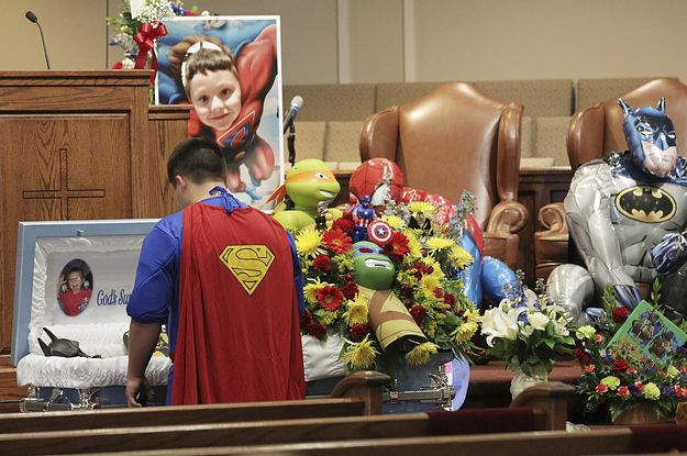 In a quiet church filled with flowers, balloons, and superhero figures, a young boy lies in a tiny white casket, surrounded by the symbols of strength and courage he adored. His father, dressed as Superman, stands beside him โ not because itโs a costume, but because thatโs what his son believed he was: a real hero. ๐๐ฆธโโ๏ธ The boyโs short life, captured in a photo where he smiles in a red cape, reminds everyone that true heroism isnโt about flying โ itโs about fighting bravely, loving deeply, and inspiring others even when life is painfully short. ๐ The room glows with colors โ Batman, Ninja Turtles, Captain America โ each toy a tribute to a little warrior who fought his battles with the heart of a giant. ๐งธโจ