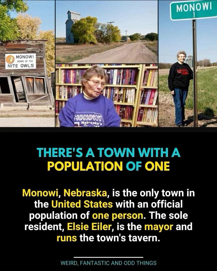 #MonowiNebraska #PopulationOne #ElsieEiler #SmallTownBigHeart #AmericanSpirit #LonelyButNotAlone ๐พ๐